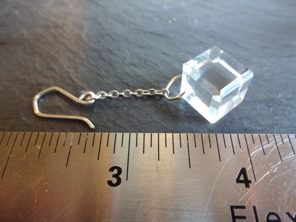 Here's a pair of dangle drop earrings using faceted crystal glass 1/2" cube buttons and my unique silver filled square wire ear wires. These sparkly buttons were earrings waiting to happen and while they are very well constructed, I went for a minimalist look to let the buttons shine! They are very eye-catching if I do say.