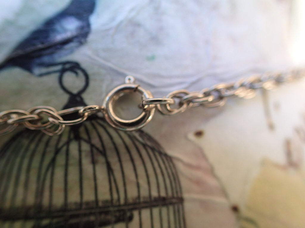 So easy to love this vintage button pendant necklace composed of a half iridescent abalone and half white mother of pearl button. The abalone on this one glows pink and turquoise. This pendant is 5/8" across. The vintage 18" sterling silver twist rope chain is slightly oxidized.