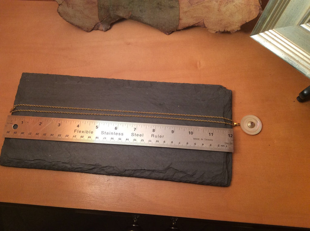 Materials: Vintage button,salvaged costume jewelry component,gold filled chain,jewelry adhesive,gold tone pendant bail