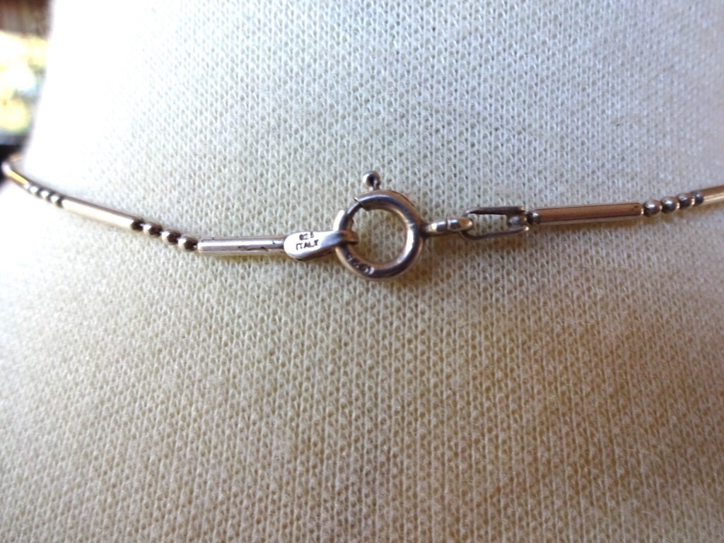 Here is a vintage ice blue smoky carved mother of pearl button and rhinestone button pendant necklace. I started with a beautiful carved blue MOP button, 1" wide, with a six pointed carved snowflake pattern and mounted a lovely blue casein button with a bright vintage rhinestone in the center. What a perfect combination! The base button shines with blue and silver iridescence. I finished with a silver pendant bail and I hung the pendant on another vintage piece, a lovely oxidized sterling silver bead and bar chain, 20" long. The result is a beautiful layered button necklace you will be proud to wear or give as a gift.