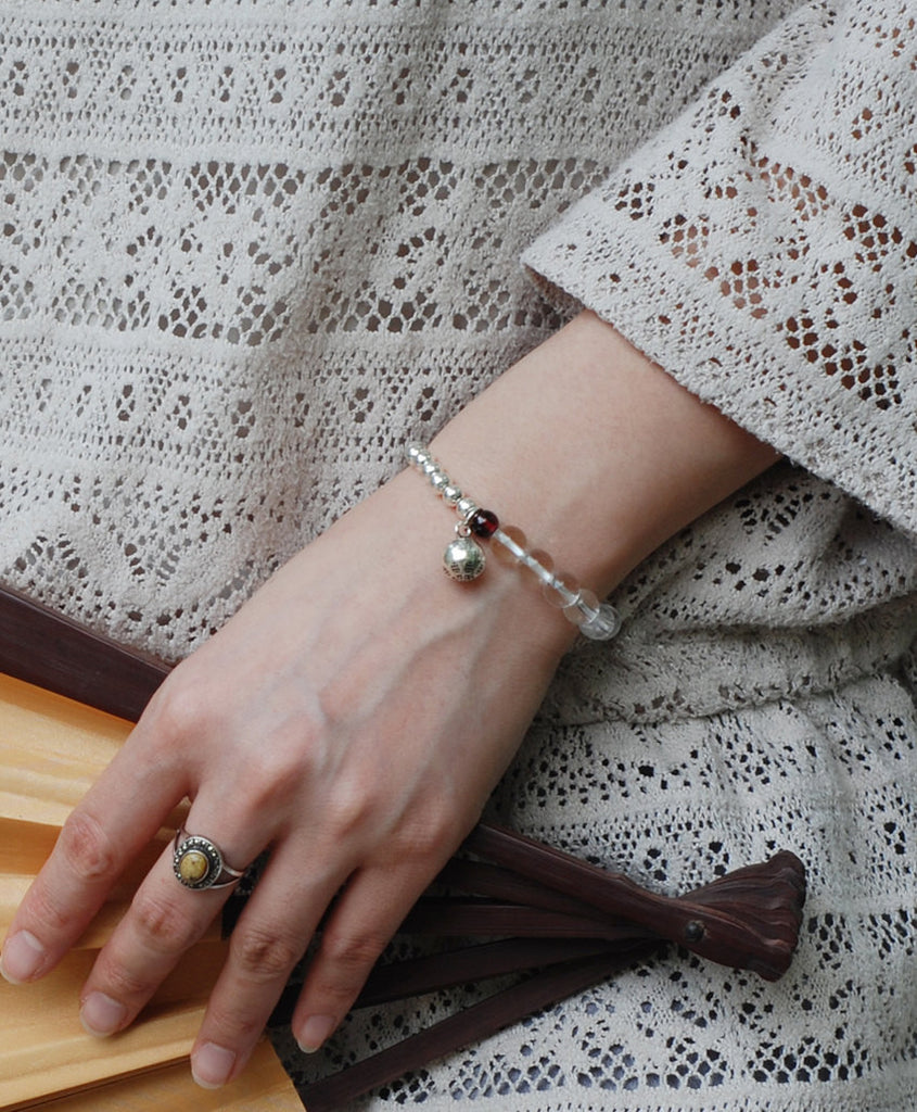 Materials: Gemstone,Crystal,White Crystal,Garnet,925 Sterling Silver,Elastic Cords