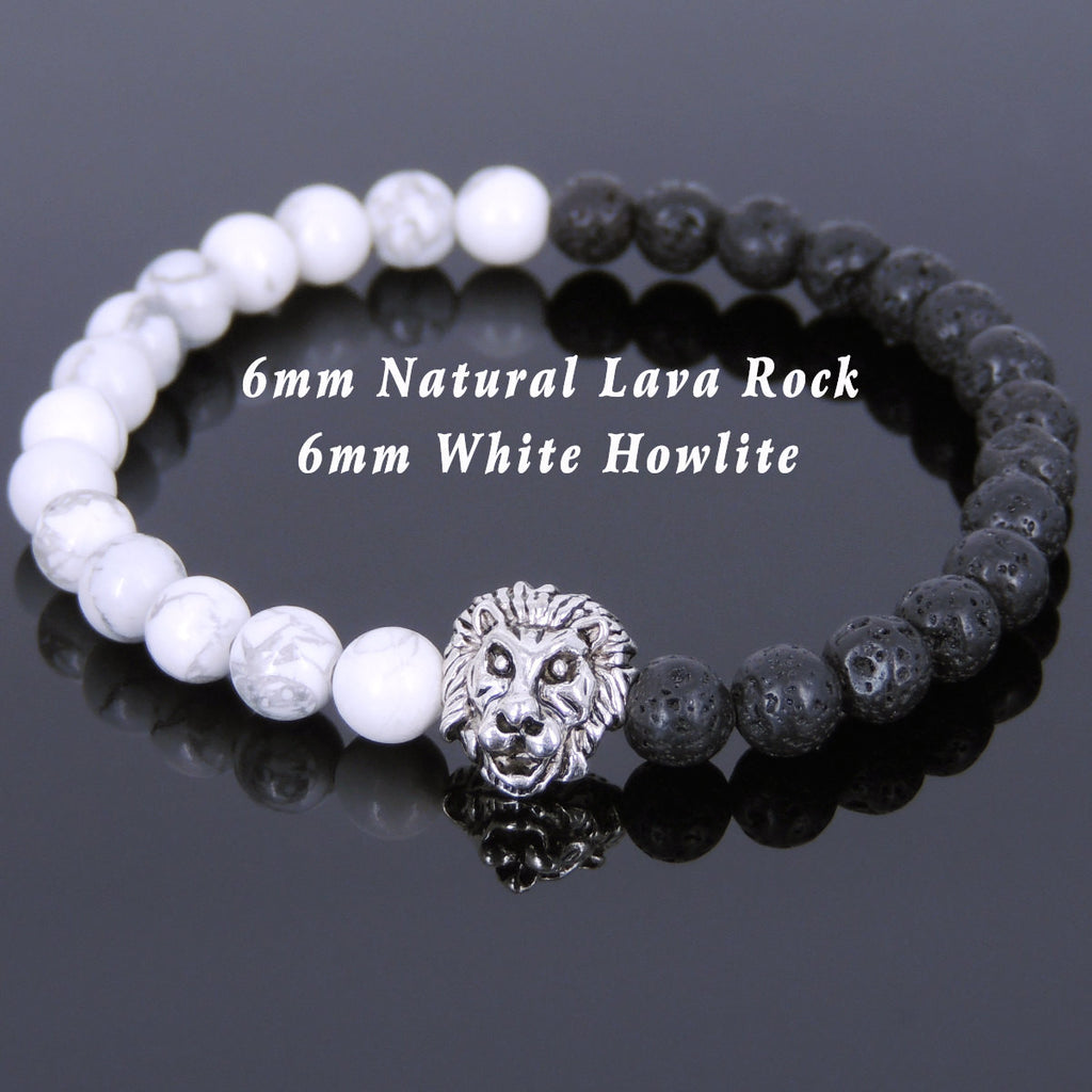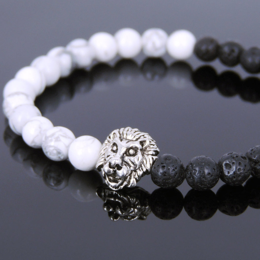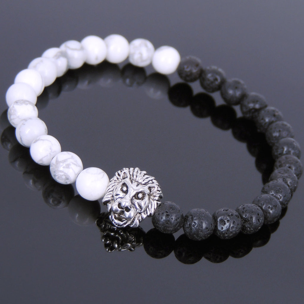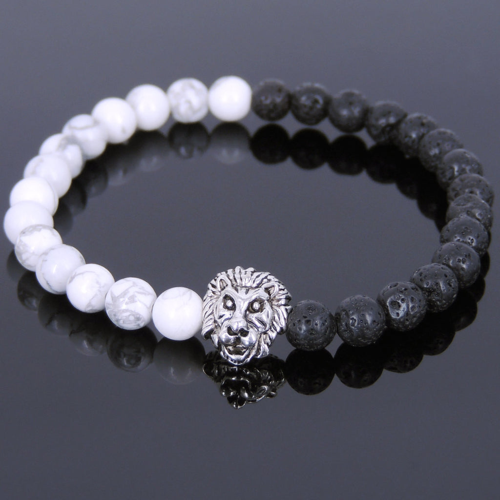 Materials: White Howlite,Lava Rock,Tibetan Silver,Elastic Cords