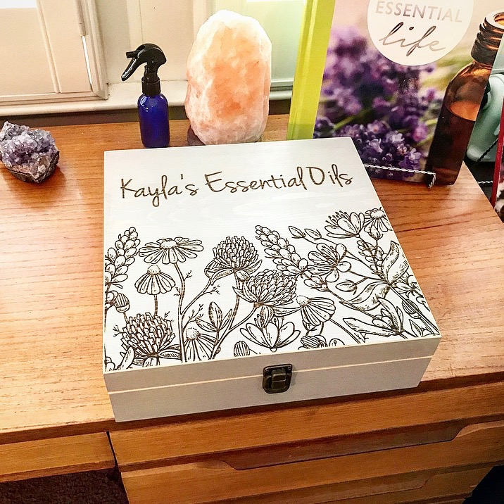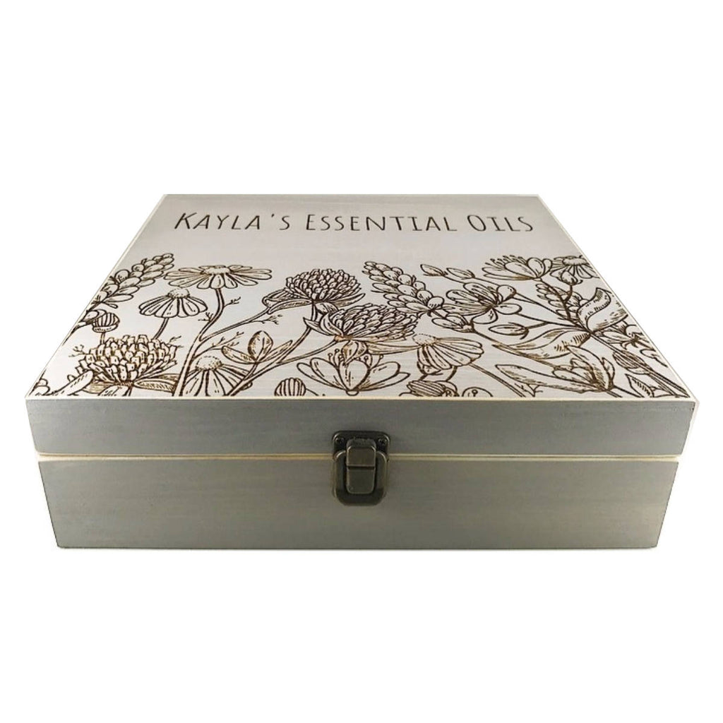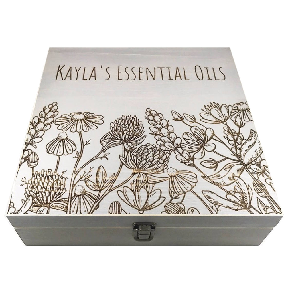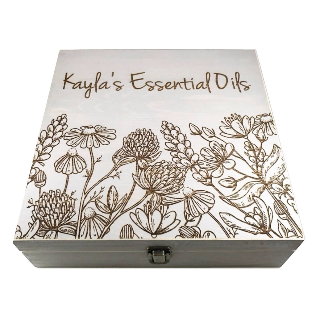 Wildflower Garden Box - Essential Oil Storage Box 58 Slot - 15mls - Pine - Choose Finish and Custom Laser Engravings - Fit dōTERRA Young Living, all 5ml-15ml bottles