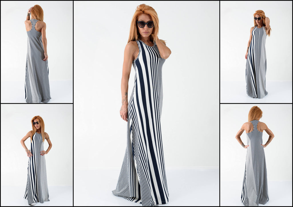 Woman Long dress/Long striped dress/Maxi dress/Open back dress /Summer dress