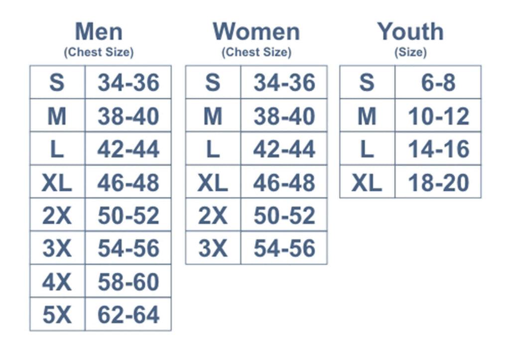 Sizes offered in Adult Unisex.