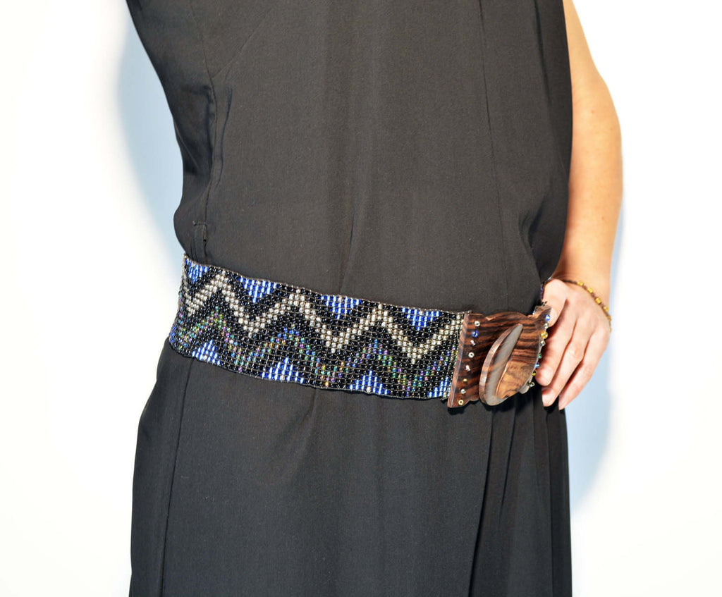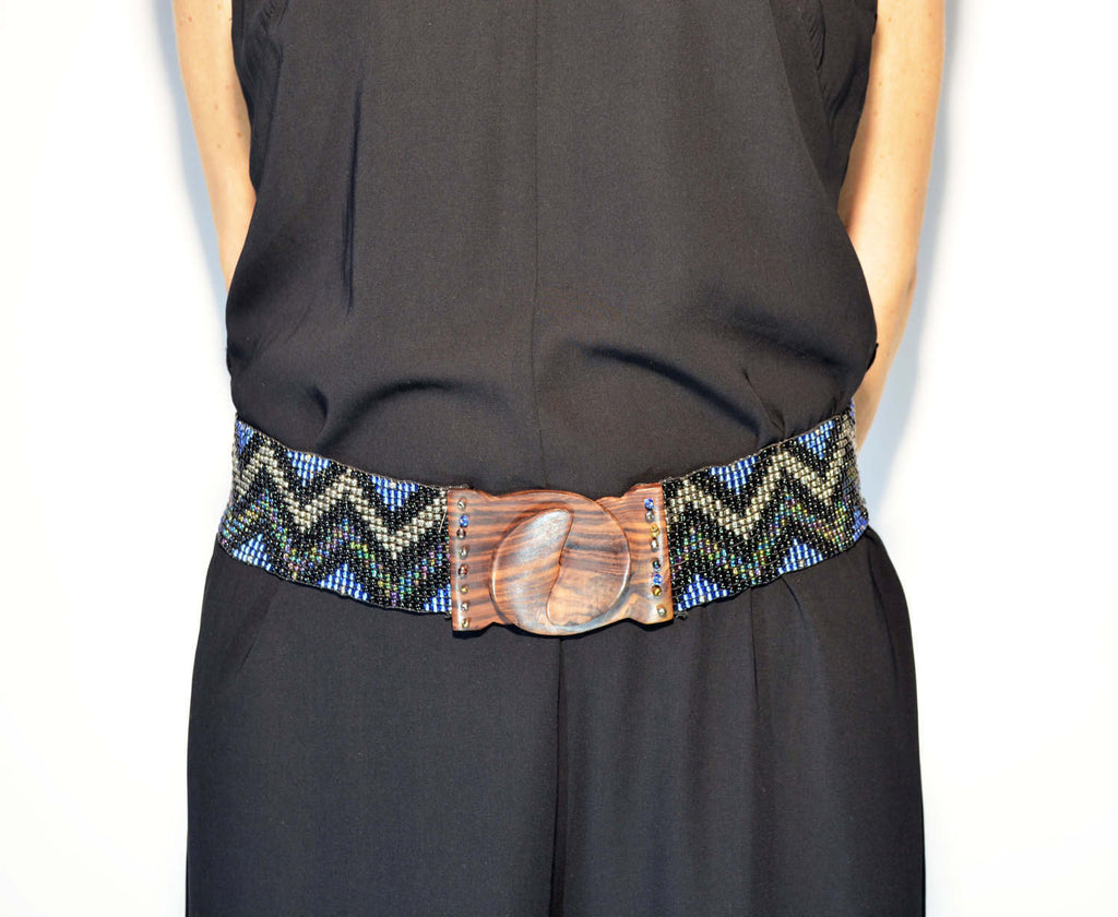 Woven Elastic Belt Beaded Belt Women's Belt Wooden Buckle Belt Elastic Belt Handmade Beaded Belt Gift For Her Cintura Elastica