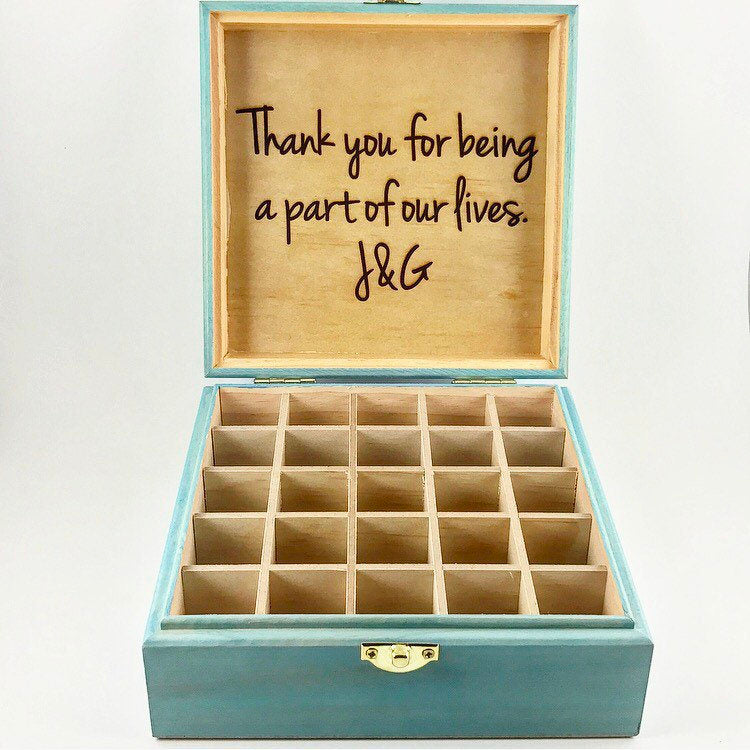 Materials: vintage aqua,pine,weathered gray,coral,laser engraved,customizable,15ml,25 slot