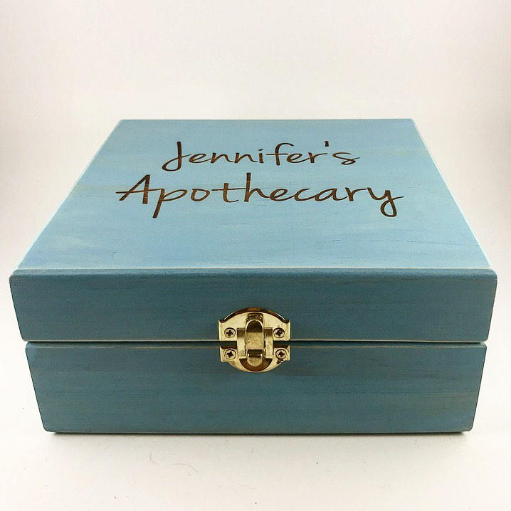 Your name + Apothecary - Essential Oil Storage Box 25 Slot - 15mls - Pine - Choose Finish and Custom Laser Engravings - Fit dōTERRA Young Living, all 5ml-15ml bottles